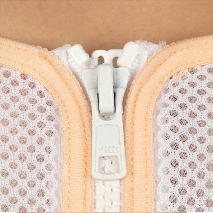 - Easy to fasten with front zip and additional hook and eye fastening