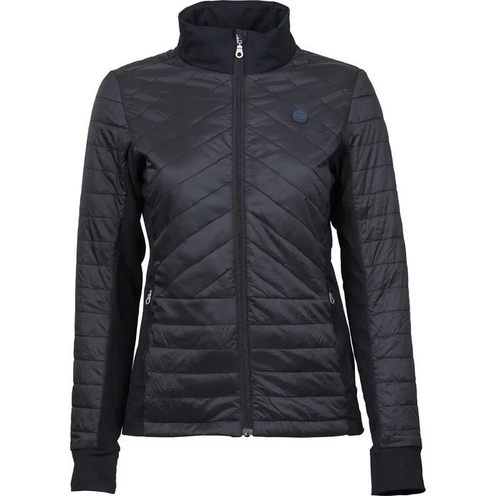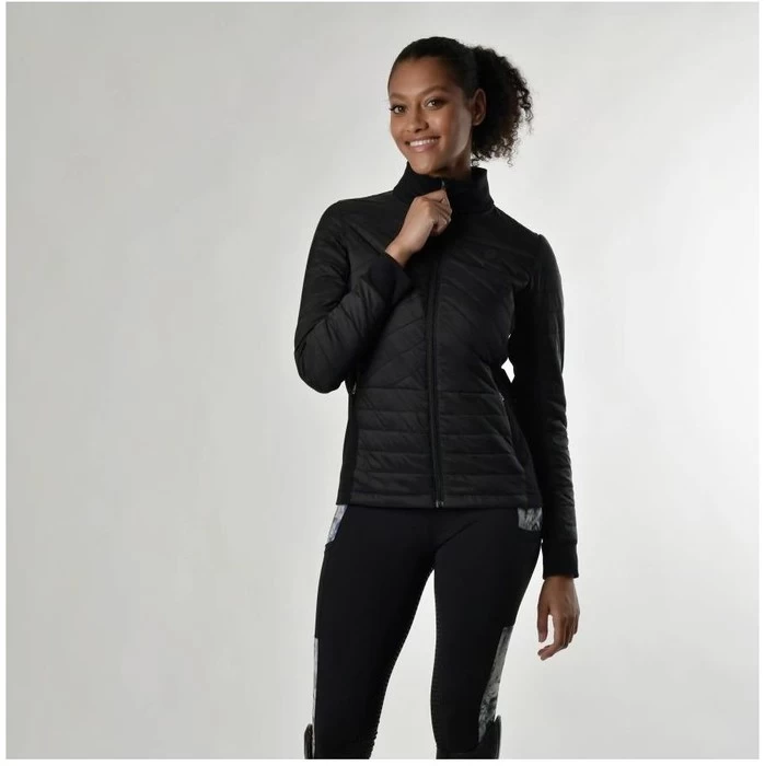 The Dublin Lia Hybrid Quilted Jacket features a combination of quilted body and outer sleeves for core warmth and polyester technical jersey for comfort and movement. The quilted sections are shower and windproof, combined with a stand up collar to help protect you against the elements. The Lia Jacket can be worn as a stand alone jacket or is great as a layering piece with a contoured hip length fit. A double puller front zip assists with layering, whilst zip pockets keep your valuables secure. Made from 87% nylon and 13% spandex, with a 100% nylon trim.
