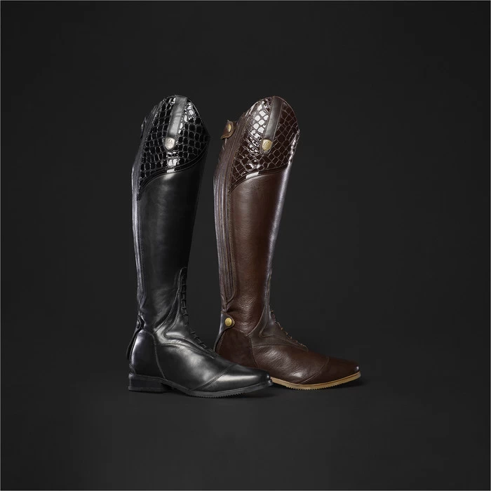 A glamorised take on the Sovereign High Rider boot from Mountain Horse. The Sovereign Lux High Rider made from high quality, supple, full grain leather featuring glossy croc print leather is a must have! Designed with a ShockX Advanced insole system providing all-day comfort it is ergonomically shaped to fit the sole of your foot. With built in steel shanks these boots will support you not only when riding but also on the ground.