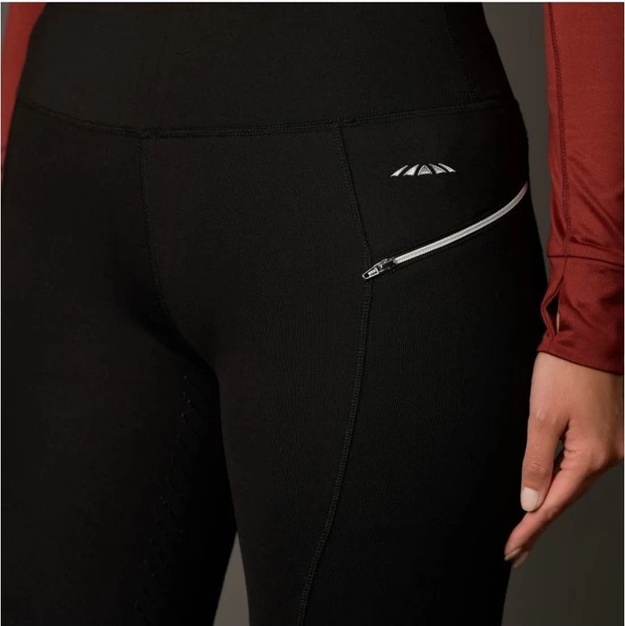 The Veda Technical Tights are technical leggings are crafted from nylon 4 way stretch material for ultimate comfort and maximum movement in and out of the saddle, featuring Comfort Dry Technology fabric that provides moisture control for all day comfort. This system ensures any moisture dries quickly to keep you cool, comfortable and dry. These elegant paneled tights with full silicone gel seat for rider stability offer zip pockets at the high hip with a fitted stretch waistband for a smooth hugging fit.