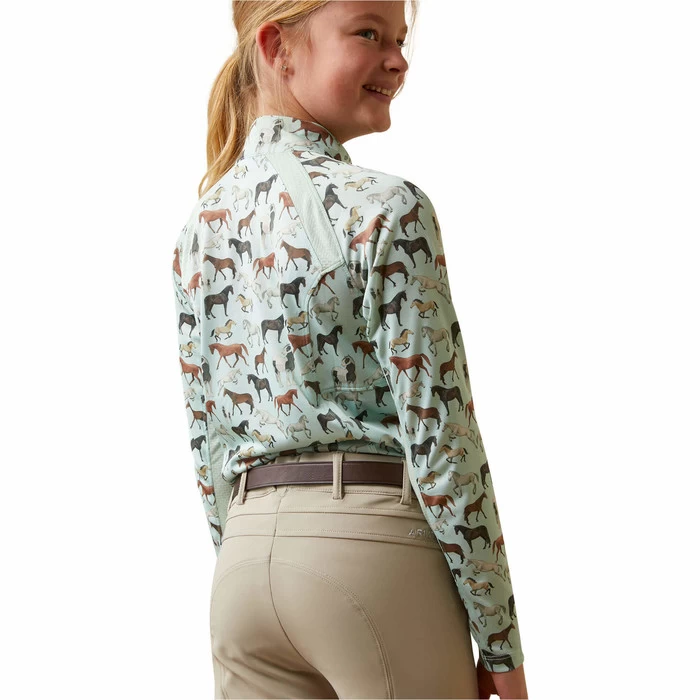 2023 Ariat Junior Sunstopper 2.0 1/4 Zip Baselayer 10043604 – Aqua Herd Print Colour Aqua Herd Print