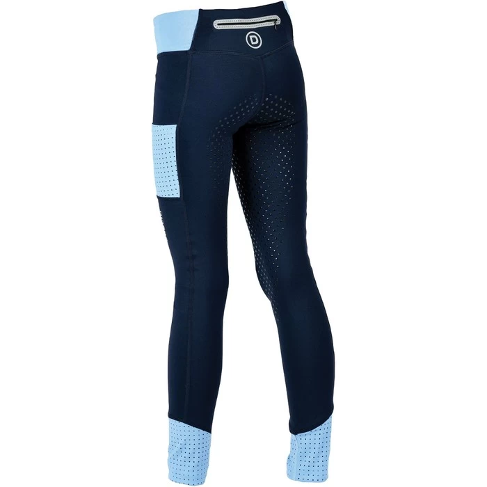 Your go to riding tights that you can wear in the yard or while being active. Athletically designed with stretch polyester fabric and technical features that include Comfort Dry technology. This system ensures any moisture dries quickly to keep you cool, comfortable and dry. The modern colour block panels offer an athletic look, with handy side phone pockets and cuff in laser mesh, that’s a perforated fabric. Featuring back zip pockets to store your essentials and seamless Ezi-Grip Gel full grip silicone print seat for stability.