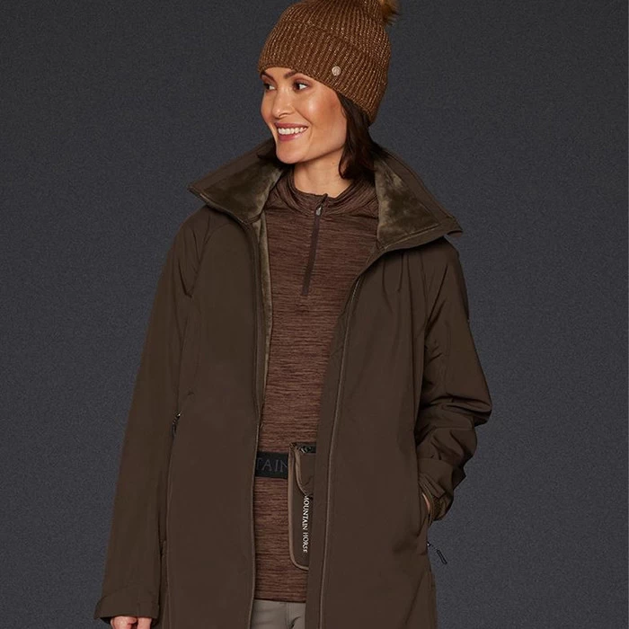 Functional water- and wind repellent softshell parkas with feminine fit. Lined with soft teddy, Long zipper opening at back and detachable hood.