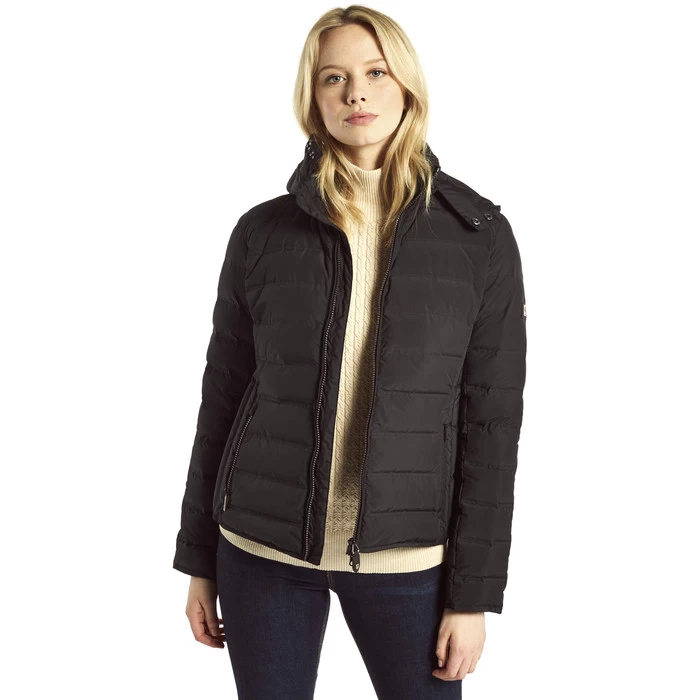 The Kilkelly Jacket by Dubarry is a ladies short down jacket with a removable hood. With a down fill weight of 170g/m2 and cosy handwarmer pockets, this jacket is perfect for winter.
