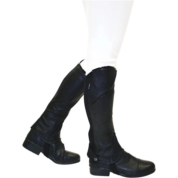 - Popper fastening with strap at the base of the half chaps for added security