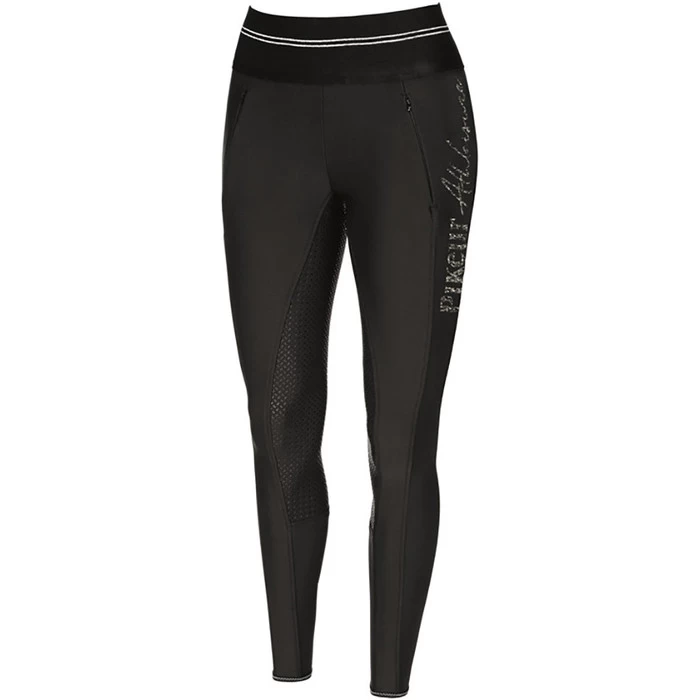 These sporty riding breeches have been designed with an elasticated high waist and made from a sweat absorbing functional material that has a 3/4 grip seat panel and a warm fleece inner. Other features include concealed zip pockets, mobile phone pocket and Pikeur print logo. These breeches provide great movement and comfort